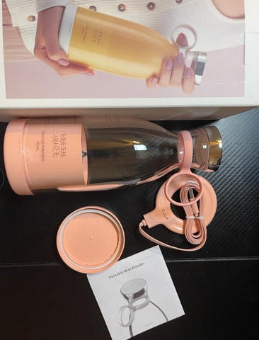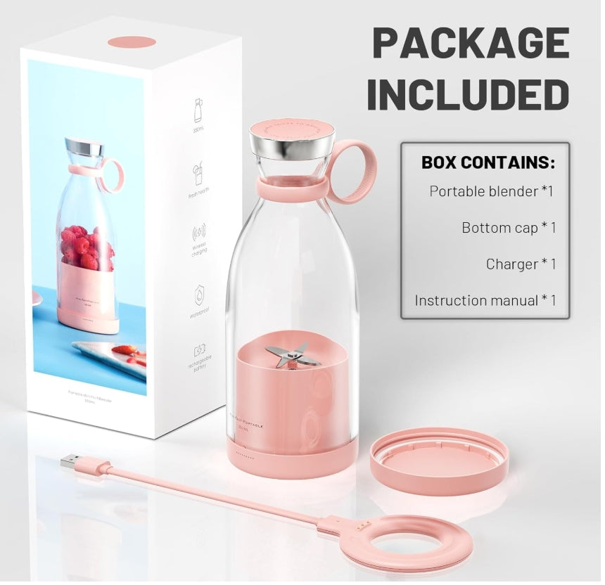 Comes with a 350 ml portable blender, bottom cap, USB changer, and user manual. Ready to use right away.